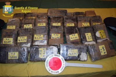 Un’articolata operazione di servizio coordinata dalla Procura della Repubblica di Ragusa è stata conclusa nei giorni scorsi dalle Fiamme Gialle del locale Gruppo, durante la quale è stata posta sotto sequestro, a carico di ignoti, una partita di oltre 30 Kg. di “cocaina”.