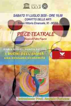 Sabato ancora teatro, stavolta alle 20 e sempre nel Cortile del Convitto delle Arti, con una pièce estratta dal libro “I buchi dell’Anima – una nessuna centomila” di Maria Alecci e Nunzia Fasano, per la regia di Fabio Figura.