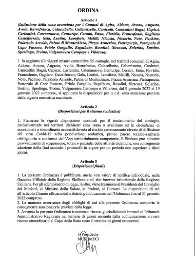 Mentre la Sicilia resta ancora gialla, con ordinanza n.1 del 7 gennaio, il Presidente della Regione Nello Musumeci ha istituito la zona arancione per alcuni comuni, tra cui Rosolini.