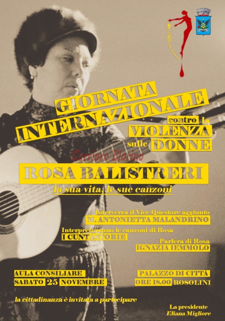 Per capire chi è Rosa Balistreri, bisogna conoscere la sua vita, le sue vicende, il suo grande amore per la Sicilia. Di questo e tanto altro parlerà la poetessa Ignazia Iemmolo Portelli, mentre i brani della celeberrima cantante saranno interpretati da “I Cantastorie“. Interverrà, inoltre, il Vice Questore aggiunto M. Antonietta Malandrino che condurrà una riflessione sul tema del femminicidio e sull’essere donna oggi.
