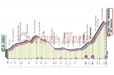 Domani riprenderà la sua corsa con la quarta tappa in programma in Sicilia. Domani 172 km da Avola all’Etna con l’arrivo al rifugio Sapienza.