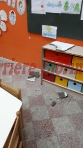 Fortunatamente al momento dell’accaduto, l’aula era vuota; bambini e insegnanti si trovavano in un’altra classe.