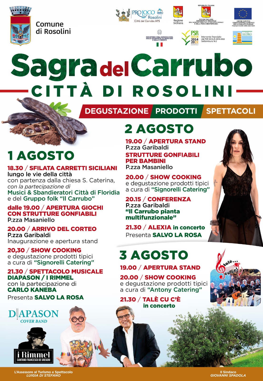 Con un’esplosione di colori, suoni e sapori, Rosolini dà ufficialmente il via oggi alla tanto attesa Sagra del Carrubo, un evento organizzato dal Comune di Rosolini con il coordinamento della Pro Loco di Rosolini per esaltare le eccellenze gastronomiche del territorio. La manifestazione è finanziata dal contributo del Gal Eloro tramite la Regione Siciliana.