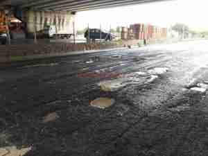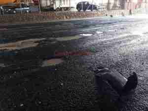 Manto stradale “colabrodo” all’uscita autostradale, causa il distacco di un paraurti