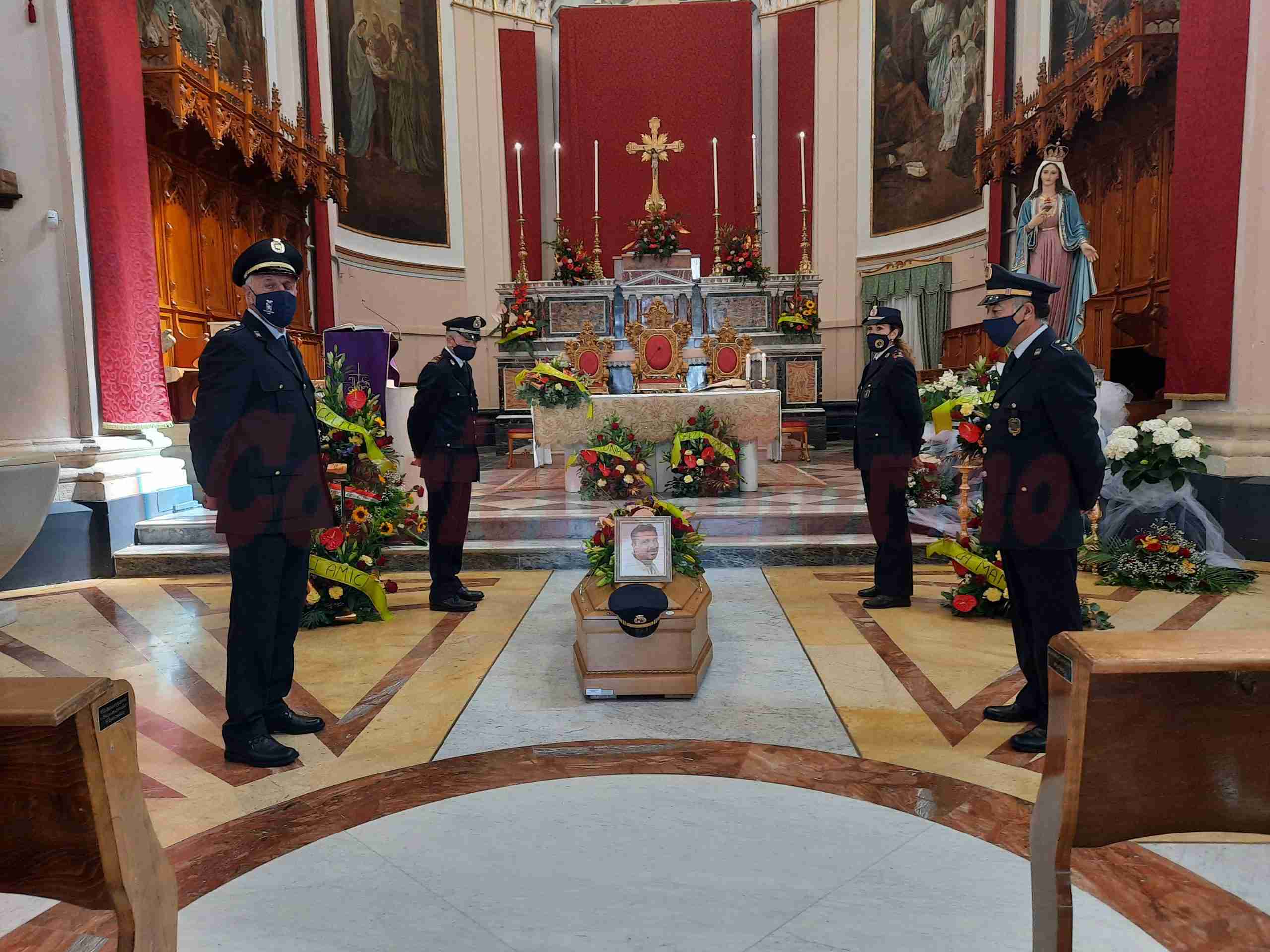 Il picchetto d’onore dei colleghi della Polizia di Provinciale di Catania ha accompagnato l’ingresso in Chiesa Madre del rosolinese Rodolfo Micieli, 58 anni, deceduto il 12 maggio scorso a seguito di una aneurisma cerebrale. A officiare il rito funebre è stato don Bruno Carbone, assieme a don Luigi e don Sandro.