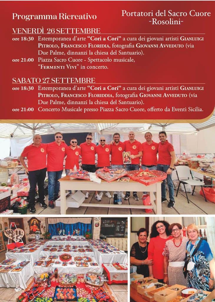 • Sabato 27 settembre: un Concerto Musicale offerto da Eventi Sicilia in Piazza Sacro Cuore.
