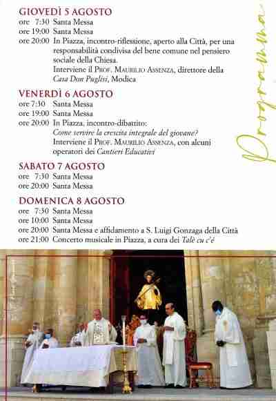 Slitta di una settimana la Festa del Patrono S. Luigi Gonzaga – Il Programma