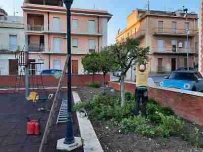 Via i rifiuti, sistemato il verde e potato l’albero di carrubo grazie alle abili mani di professionisti locali che collaborano con Città Verde.