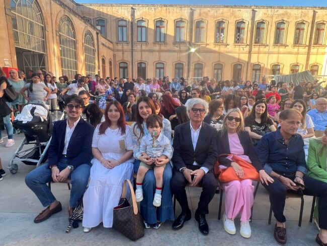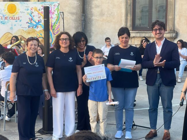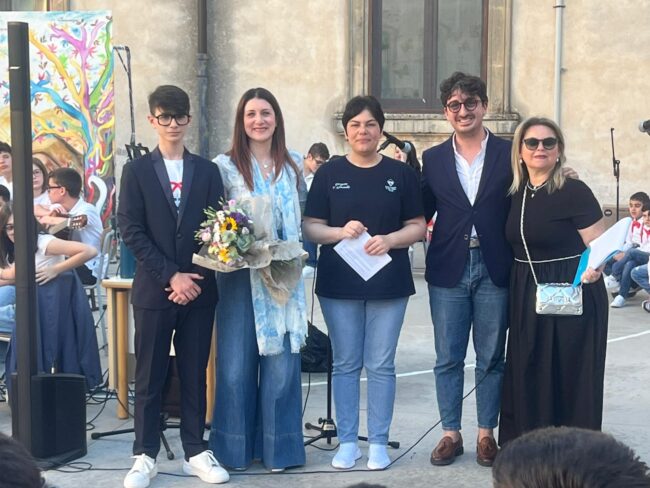 Presenti il marito di Concetta Guarino, il sig. Vincenzo Giannone, e i figli Titti e Antonio che, assieme alla maestra Giusi Puglisi e alla dirigente scolastica Teresa Scimonello, hanno officiato la cerimonia nel cortile dedicato proprio alla memoria di Concetta. La premiazione si è svolta in un’atmosfera festosa ma non priva di momenti di profonda emozione, come quello regalato dalla studentessa Carola Amaddio, che si è esibita sulle note di “A parte te” di Ermal Meta.